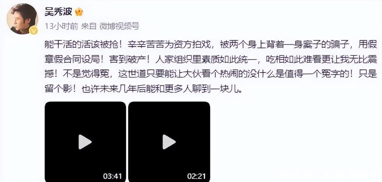 就在陈昱霖曝光他后,他打着和解的名义,同意支付千万分手费,把陈昱霖从国外骗回国。但实际上,他早就报警告对方勒索,陈昱霖刚落地机场,直接被警方带走,最终被判刑三年。原本被骂的第三者,经此一遭,成为大众同情的对象,吴秀波进一步口碑暴跌,被打上无情无义的标签,成为人人喊打的落水狗。他的演艺之路被堵死,不久,他名下的公司也财务暴雷,2023年,被法院裁定欠款4.66亿。